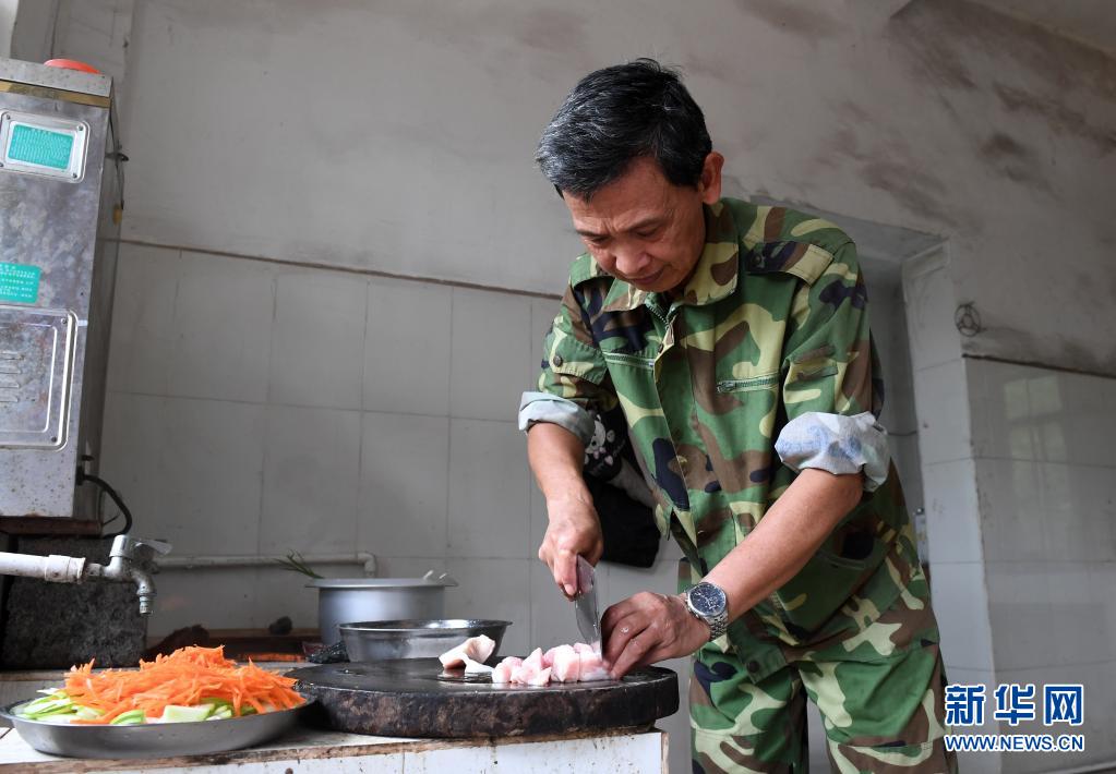 在廣西上思縣那琴鄉(xiāng)中心小學(xué)逢通村教學(xué)點(diǎn),梁志雄老師在給學(xué)生做午飯(6月16日攝)。新華社記者 陸波岸 攝