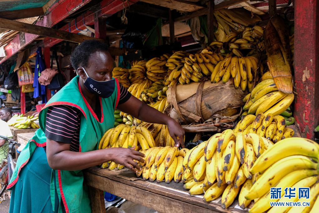 6月23日,商販在烏干達坎帕拉的納卡塞羅市場整理香蕉。
