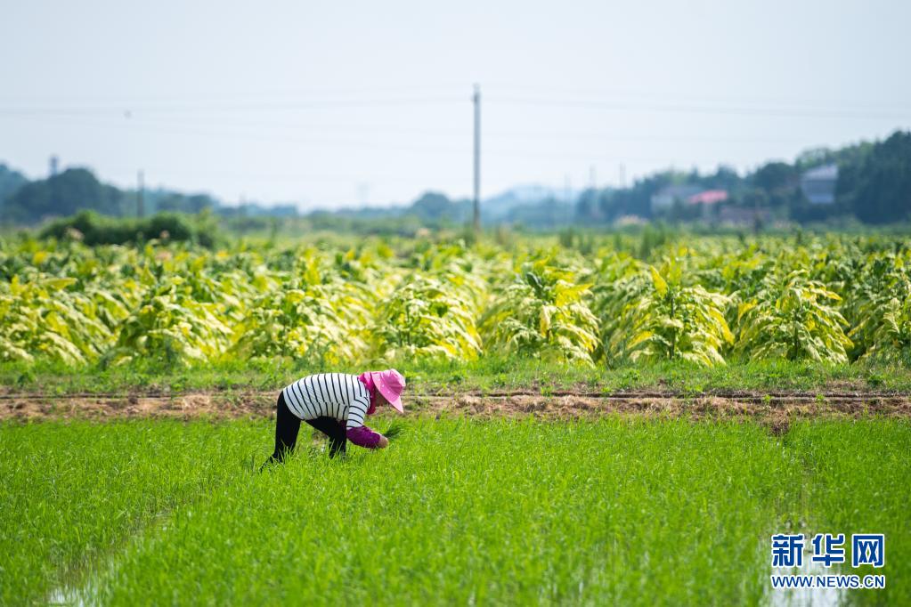 6月26日,湖南瀏陽龍伏鎮(zhèn)新開村村民在田間除草。
