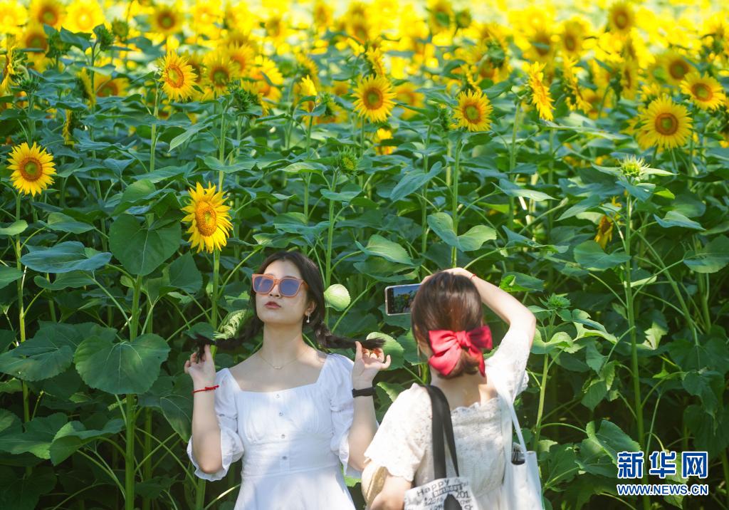 日前,北京奧林匹克森林公園北園的向日葵進(jìn)入盛花期,眾多市民和游客前來觀賞。