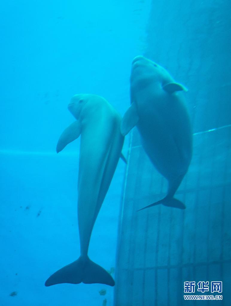 7月5日,江豚媽媽洋洋和小江豚YYC在水中游動。新華社記者肖藝九攝