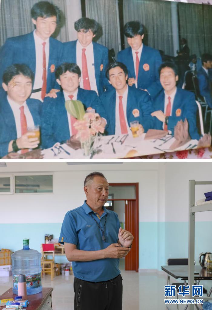 這是一張拼版照片:上圖為20世紀(jì)80年代杜寶柱(后排中)參加國際比賽時(shí)和隊(duì)員們的合影(受訪者供圖);下圖為杜寶柱教練在塔城市第二小學(xué)宿舍內(nèi)整理裝備,準(zhǔn)備出門帶隊(duì)訓(xùn)練(6月12日攝,新華社記者 胡虎虎 攝)。