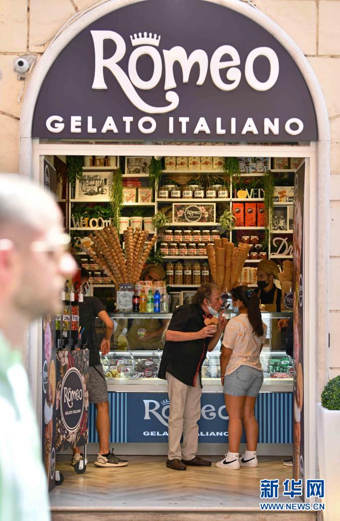 7月11日,人們在意大利羅馬的一家冰淇淋店內(nèi)消費(fèi)。