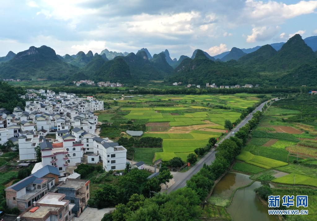 盛夏時節(jié),廣西平樂縣張家鎮(zhèn)田園郁郁蔥蔥,美不勝收(7月14日攝,無人機照片)。