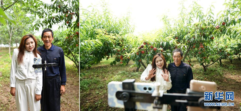 拼版照片:左圖為常阿娟和父親常乃民在山西省長(zhǎng)治市潞州區(qū)東旺村果園里;右圖為常阿娟和父親常乃民通過(guò)網(wǎng)絡(luò)直播介紹自家種的水果(7月7日攝)。今年28歲的常阿娟原來(lái)在一家會(huì)計(jì)師事務(wù)所工作,2019年返鄉(xiāng)和父母一起打理果園。近兩年,常阿娟抓住網(wǎng)絡(luò)直播的熱潮,把鏡頭聚焦田間地頭,澆水、施肥、剪枝現(xiàn)場(chǎng)都成了她的“直播間”。借助網(wǎng)絡(luò)的力量,常阿娟家的產(chǎn)品不愁銷(xiāo)路,找她代售農(nóng)產(chǎn)品的村民也越來(lái)越多。