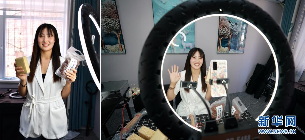 拼版照片:左圖為何雪艷在山西省平順縣龍鎮(zhèn)村電商服務(wù)中心直播間里;右圖為何雪艷通過網(wǎng)絡(luò)直播介紹農(nóng)產(chǎn)品(7月8日攝)。今年25歲的何雪艷是龍鎮(zhèn)村電商服務(wù)中心的網(wǎng)絡(luò)主播,從一個“電商小白”變身網(wǎng)絡(luò)主播不到一年時間,何雪艷已成為龍鎮(zhèn)村帶貨能力頗強的“網(wǎng)紅”。從最初直播時結(jié)結(jié)巴巴,到如今精準掌握網(wǎng)絡(luò)語言,何雪艷和村里其他主播變得越來越熟練。