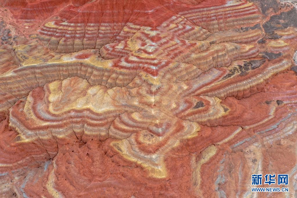 張掖世界地質(zhì)公園一處彩色丘陵地貌呈現(xiàn)出“五彩祥云”景象(7月14日攝,無人機照片)。