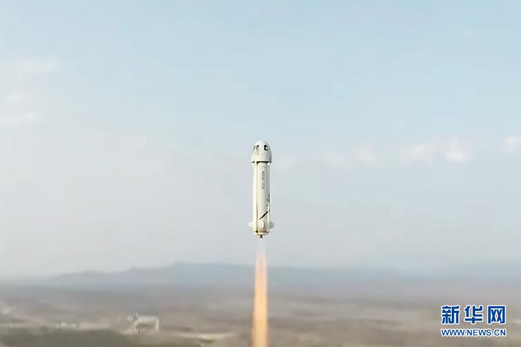 這張美國藍(lán)色起源公司7月20日發(fā)布的視頻截圖顯示“新謝潑德”飛行器從美國得克薩斯州西部一處發(fā)射場升空。