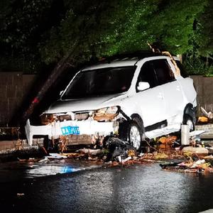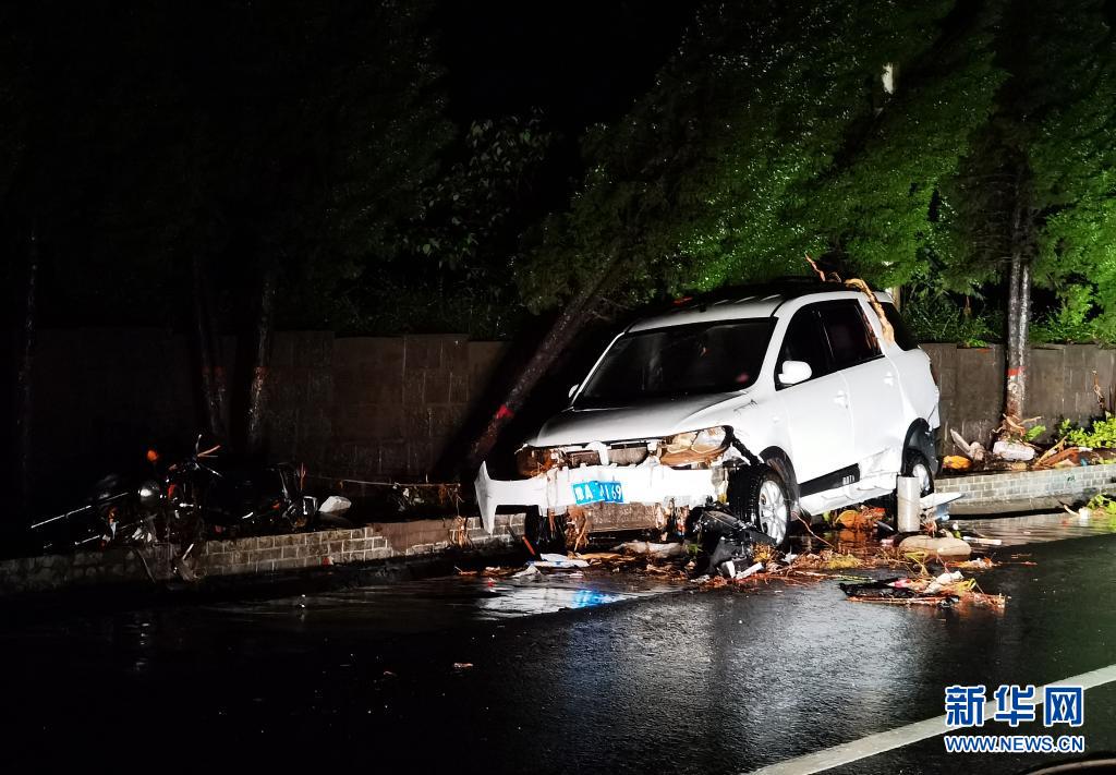7月21日在310國道米河鎮(zhèn)段拍攝的一輛因洪水損壞的汽車。