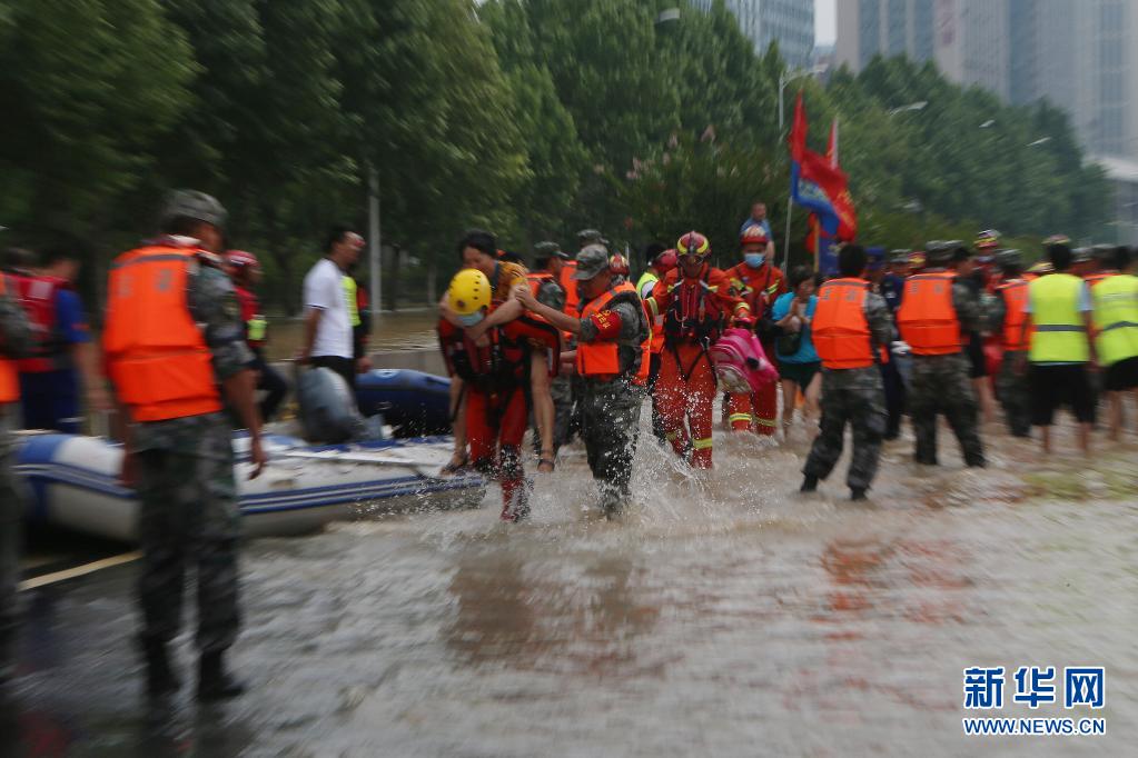 7月22日,在阜外華中心血管病醫(yī)院附近,救援人員轉(zhuǎn)移人員。