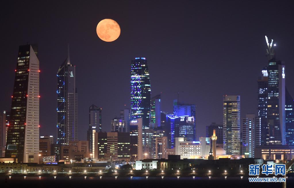 這是7月25日晚在科威特首都科威特城拍攝的月亮。