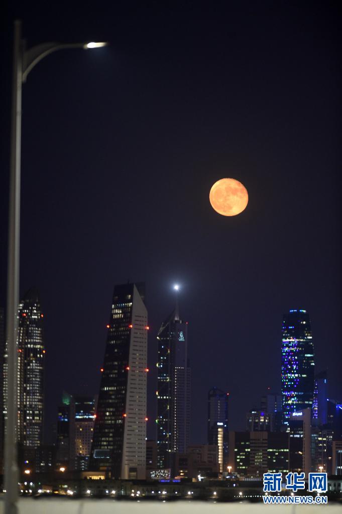 這是7月25日晚在科威特首都科威特城拍攝的月亮。