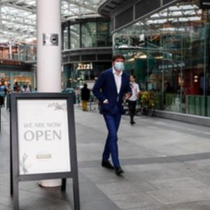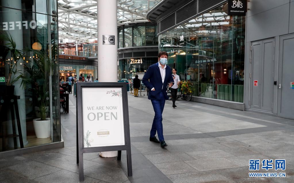7月26日,一名戴口罩的男子從英國(guó)倫敦維多利亞一家開(kāi)放的餐廳旁走過(guò)。