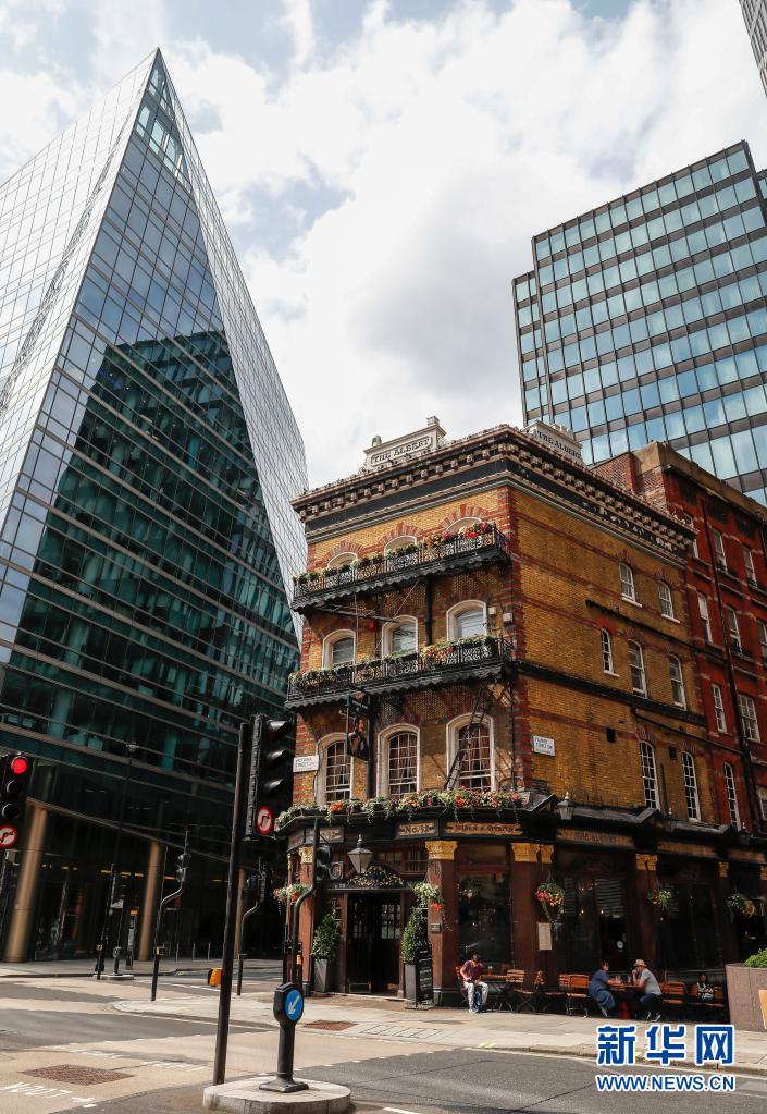 7月26日,人們坐在英國(guó)倫敦市中心一家酒吧的戶外餐飲區(qū)。