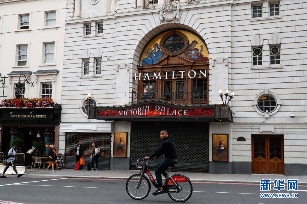 7月26日,人們從英國(guó)倫敦關(guān)閉的維多利亞宮劇院門前經(jīng)過(guò)。
