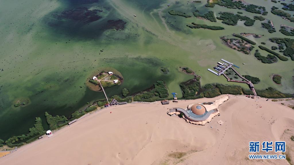 這是7月31日拍攝的寧夏沙湖景區(qū)(無人機(jī)照片)。