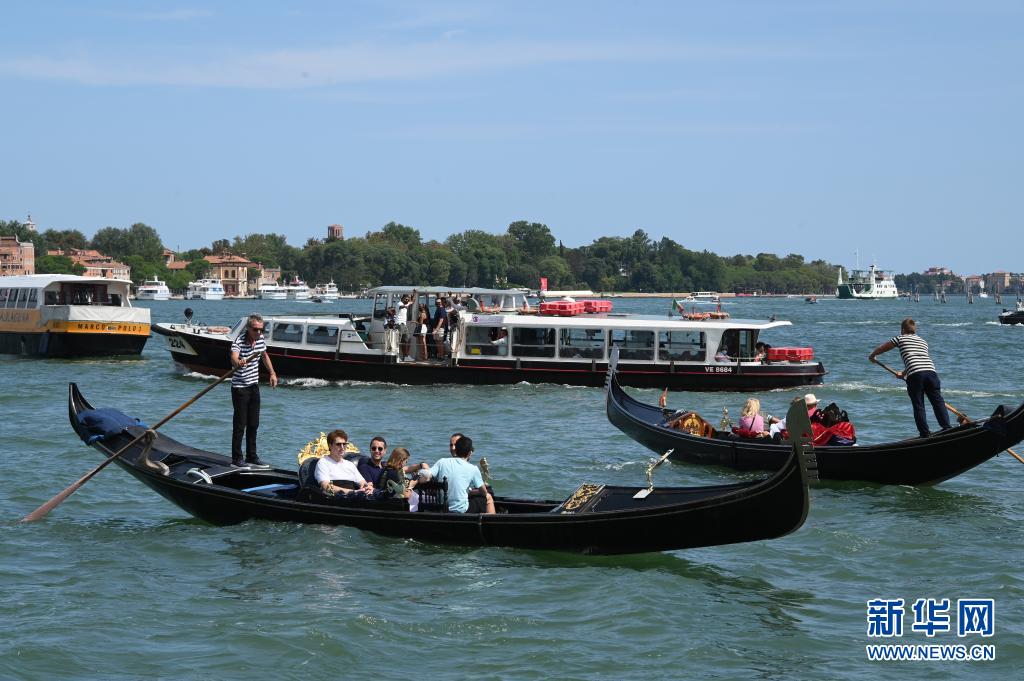 8月3日,游客乘坐“貢多拉”船游覽意大利威尼斯。