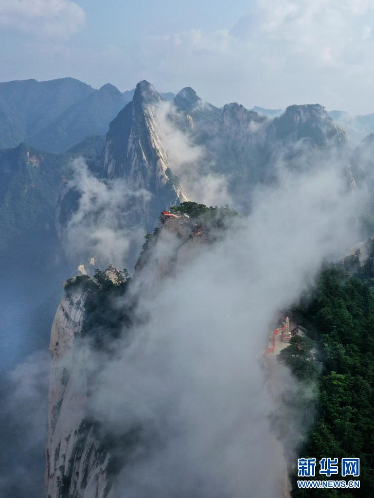 8月14日,云霧中的西岳華山風(fēng)光(無人機(jī)照片)。