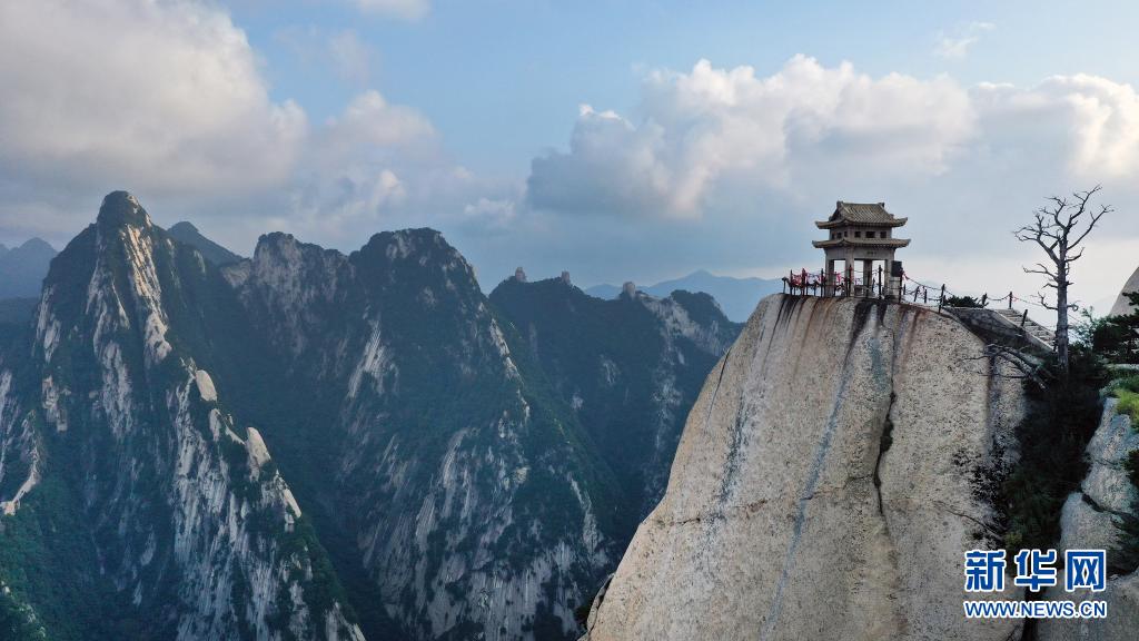 8月14日,西岳華山東峰下棋亭風光(無人機照片)。