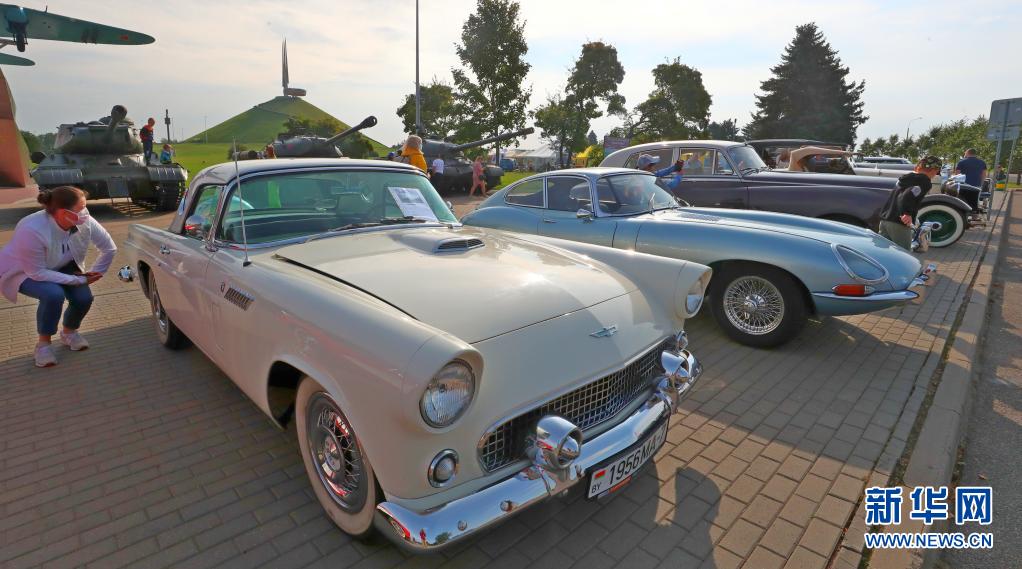 8月14日,白俄羅斯首都明斯克舉辦老爺車展,吸引人們前來觀看。