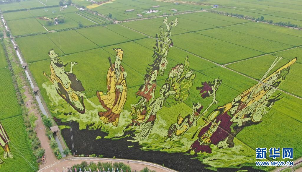 這是8月16日拍攝的稻田畫《八仙過?!罚o人機(jī)照片)。
