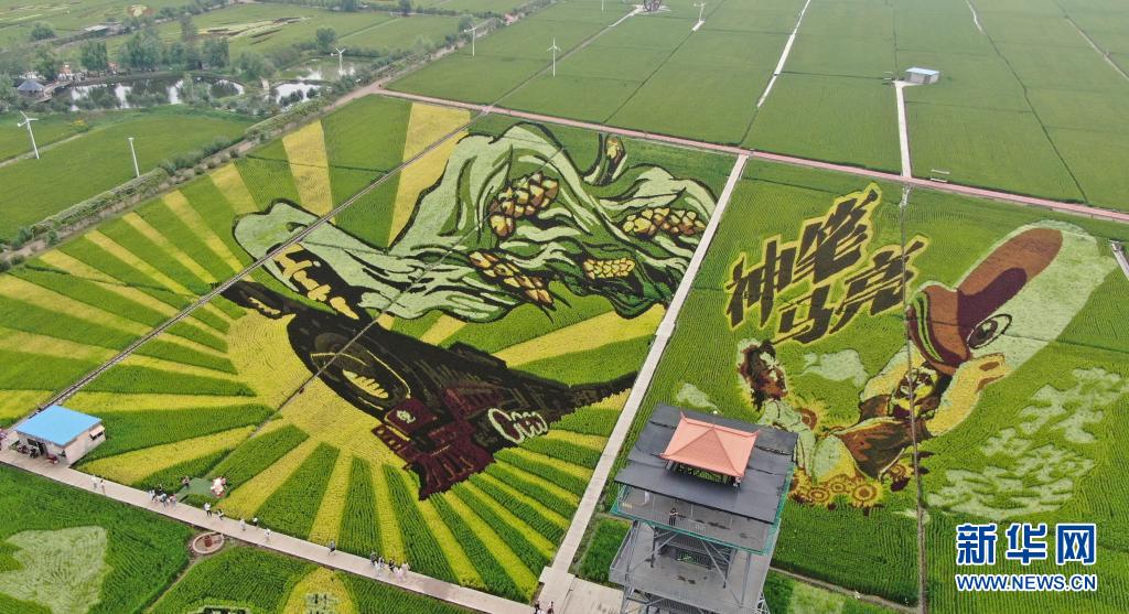 8月16日拍攝的稻田畫《神筆馬亮》,這里也是電影《我和我的家鄉(xiāng)》取景地(無人機照片)。