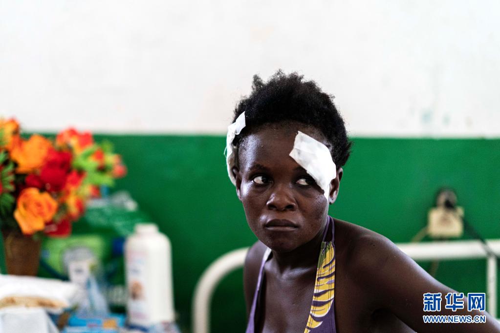 這是8月18日在海地震中附近的萊凱一家醫(yī)院拍攝到的傷員。