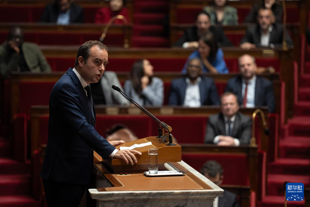 10月16日,在位于法国巴黎的国民议会,法国总理勒科尔尼在不信任动议投票前的辩论环节发言。