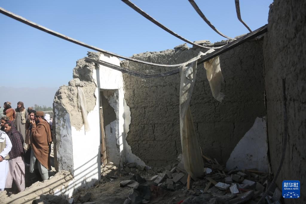 这是2月22日在阿富汗东部楠格哈尔省拍摄的遭空袭后的场景。