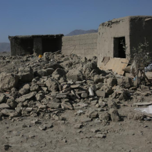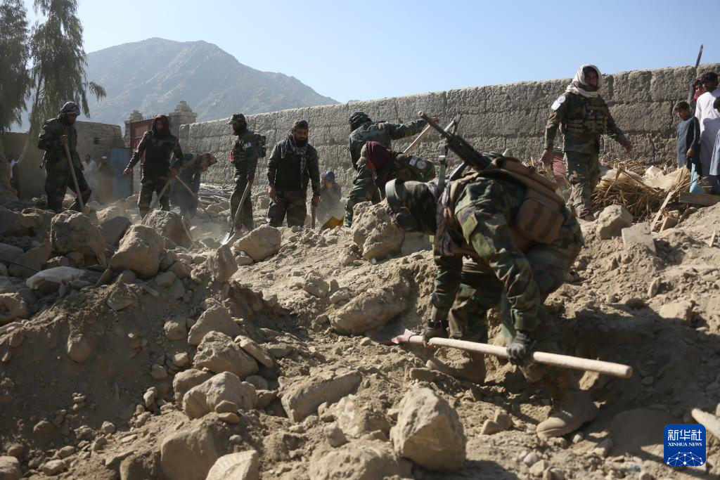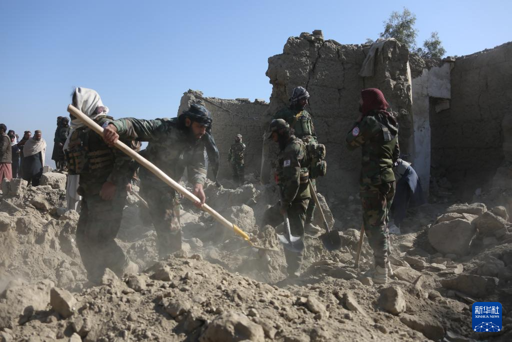 2月22日,在阿富汗东部楠格哈尔省,当地安全部队人员在遭空袭后的废墟中展开搜寻工作。
