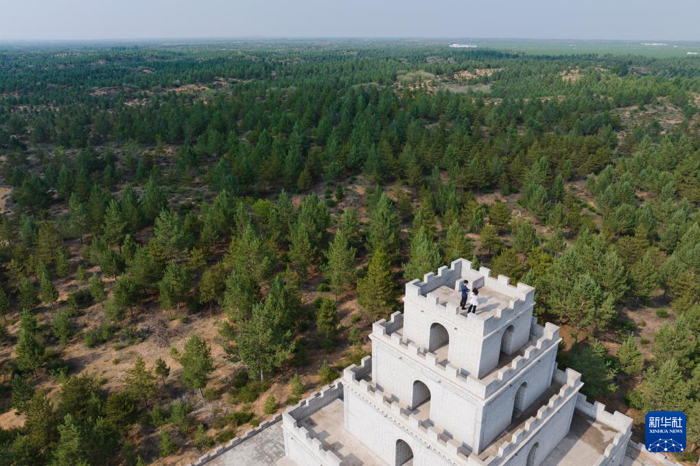 这是陕西榆林神木市毛乌素治沙造林基地内建设的人工林(2024年6月5日摄,无人机照片)。