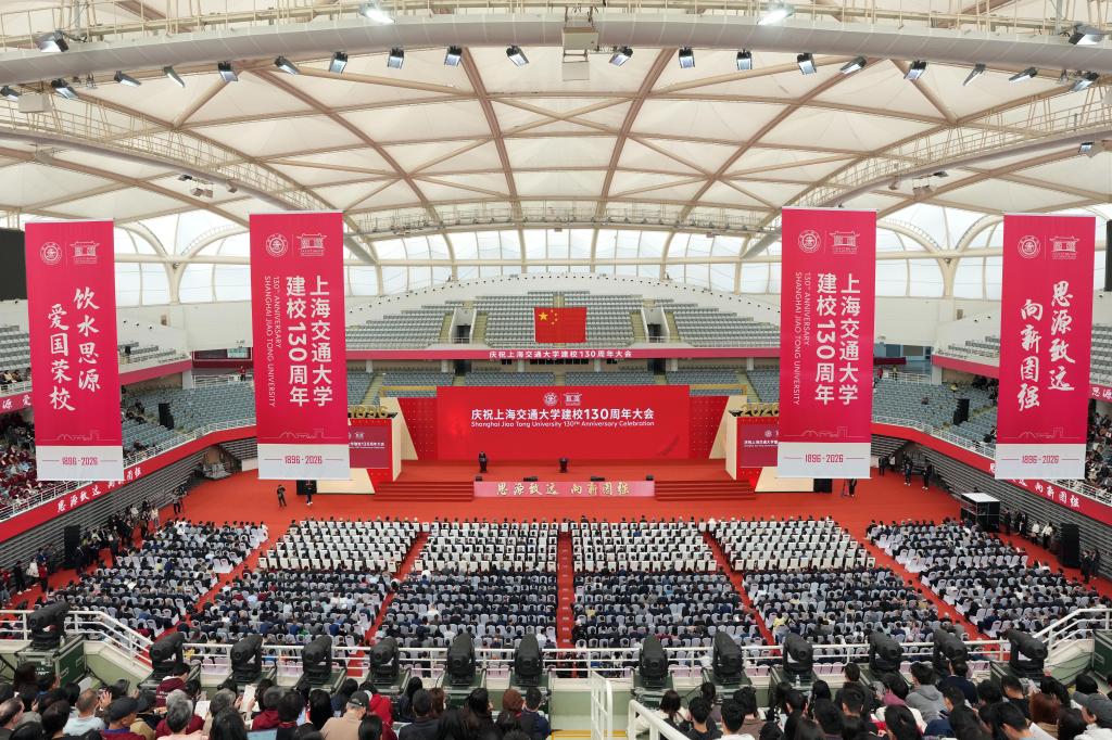 4月8日,“庆祝上海交通大学建校130周年大会”在上海交通大学闵行校区霍英东体育中心举行。