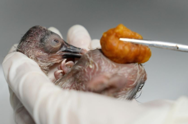 4月8日,浙江省湖州市德清县下渚湖朱鹮繁育研究基地今年人工孵化的首只朱鹮宝宝出壳诞生。