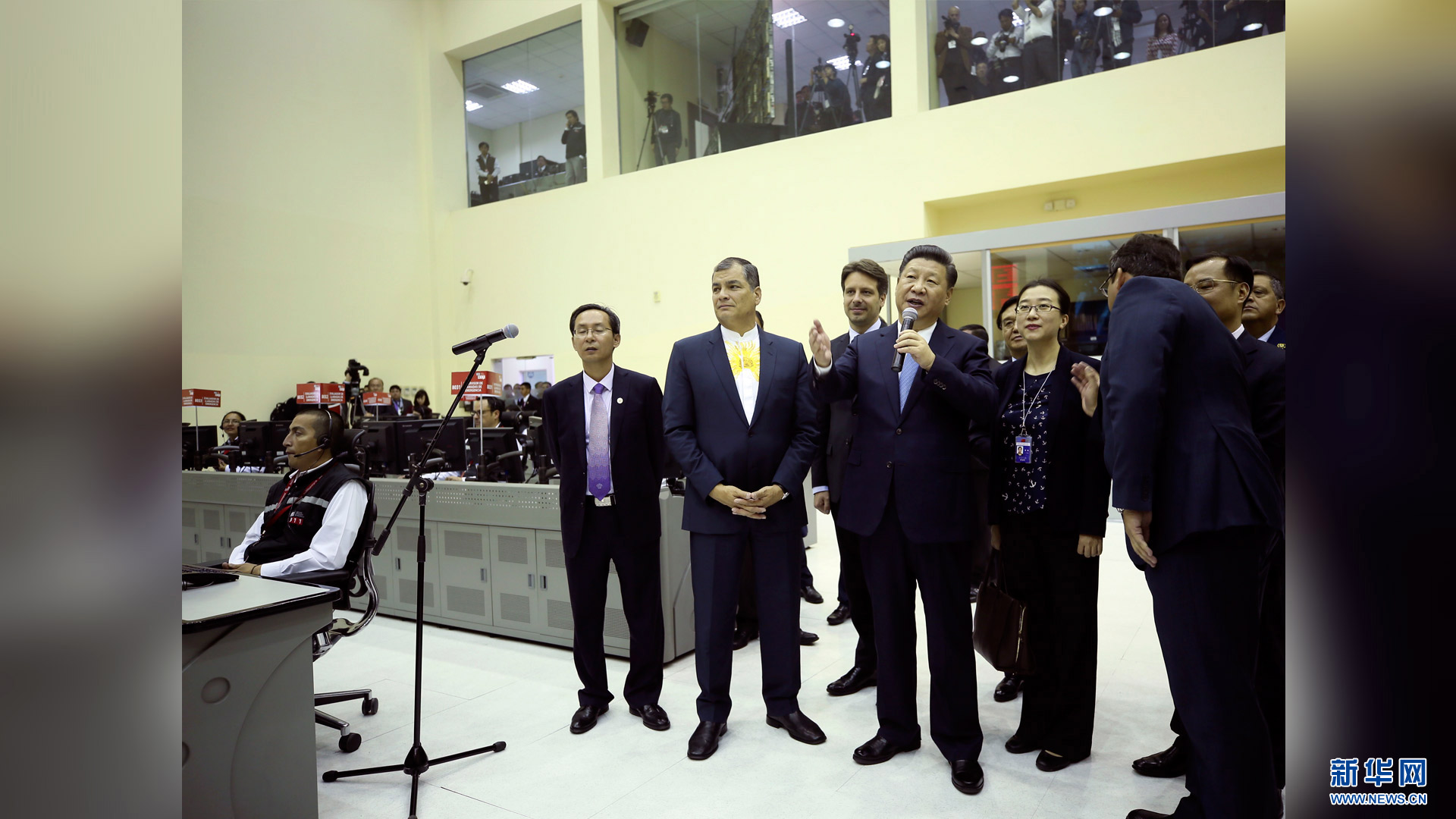 當?shù)貢r間11月18日,國家主席習近平在基多同厄瓜多爾總統(tǒng)科雷亞共同出席中方援建的厄瓜多爾公共安全應(yīng)急指揮中心聯(lián)合實驗室揭牌儀式,喬內(nèi)醫(yī)院奠基、科卡科多-辛克雷水電站竣工發(fā)電視頻連線活動。這是習近平出席活動后致辭。新華社記者 馬占成 攝2016-11-19