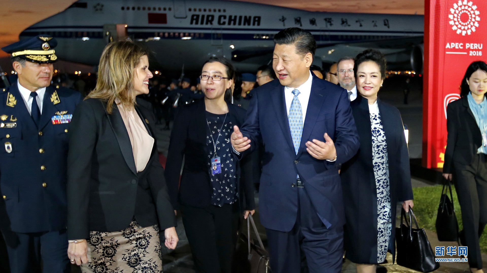 當?shù)貢r間11月18日,國家主席習近平抵達利馬,出席亞太經(jīng)合組織第二十四次領(lǐng)導(dǎo)人非正式會議并對秘魯共和國進行國事訪問。習近平和夫人彭麗媛受到秘魯副總統(tǒng)阿勞斯等熱情迎接。新華社記者 丁林 攝2016-11-20
