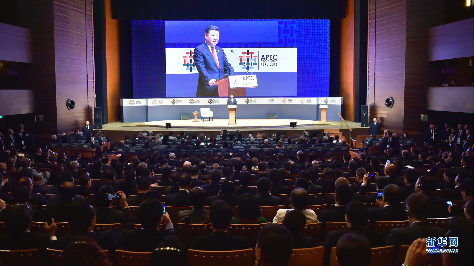 11月19日,2016年亞太經(jīng)合組織工商領(lǐng)導(dǎo)人峰會在秘魯利馬舉行。國家主席習近平應(yīng)邀出席并發(fā)表題為《深化伙伴關(guān)系 增強發(fā)展動力》的主旨演講。 新華社記者 蘭紅光 攝2016-11-20