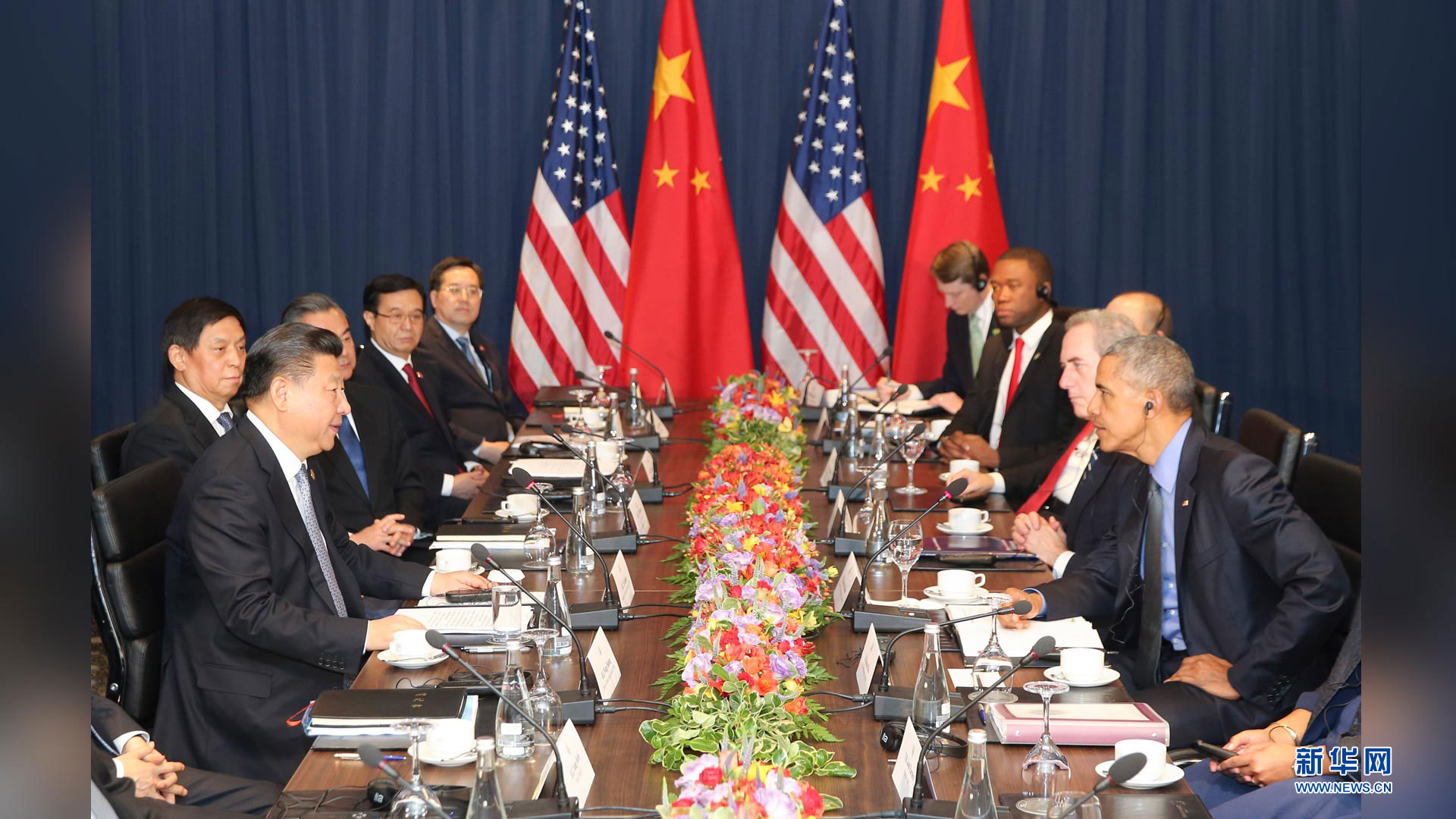 11月19日,國家主席習近平在利馬會見美國總統(tǒng)奧巴馬。 新華社記者蘭紅光 攝2016-11-20
