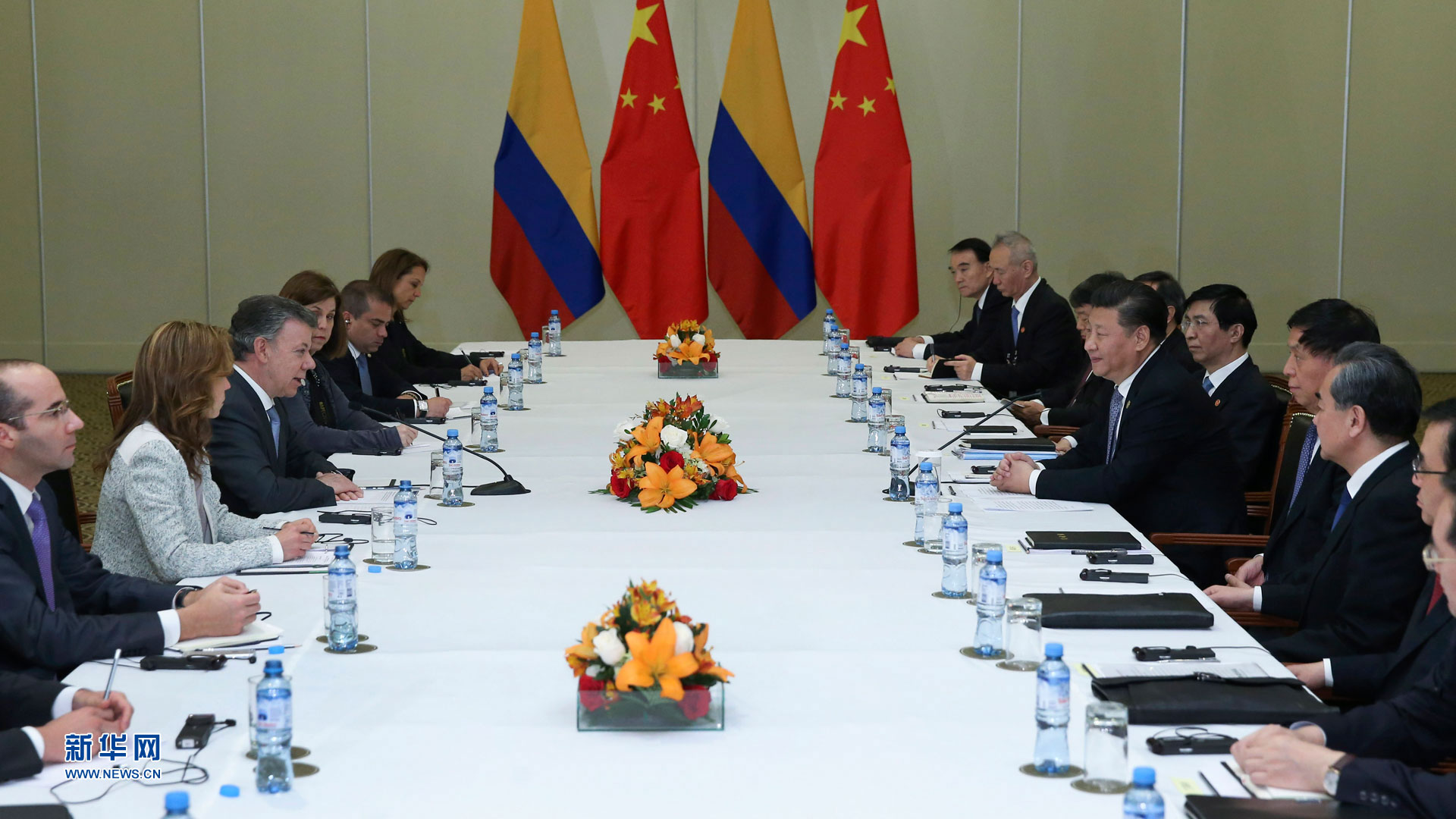 11月19日,國家主席習近平在利馬會見哥倫比亞總統(tǒng)桑托斯。新華社記者 龐興雷 攝2016-11-20