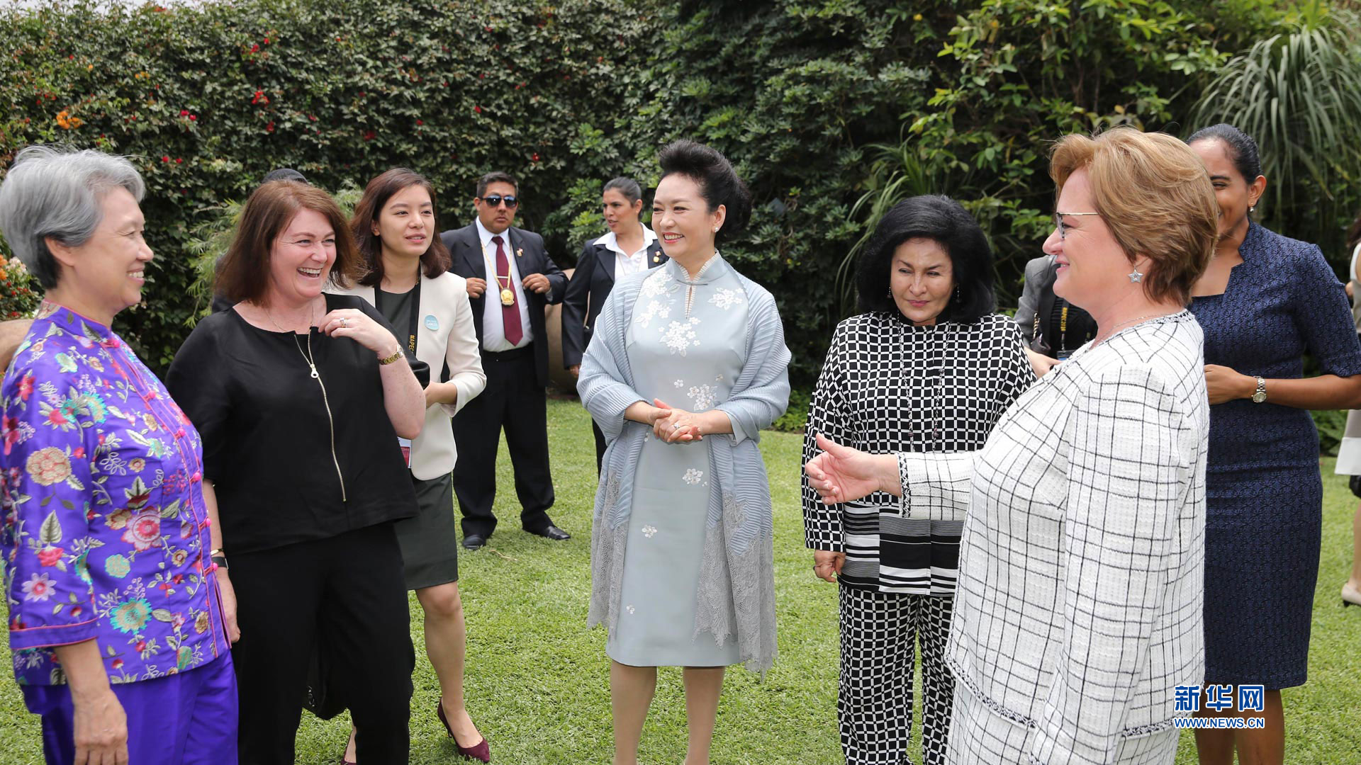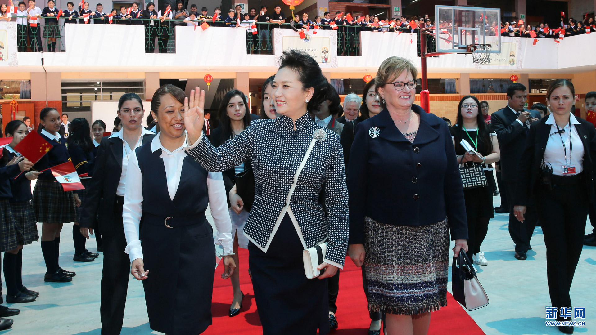 11月21日,國家主席習近平夫人彭麗媛在利馬參觀若望二十三世秘中學(xué)校。 新華社記者丁林攝2016-11-22