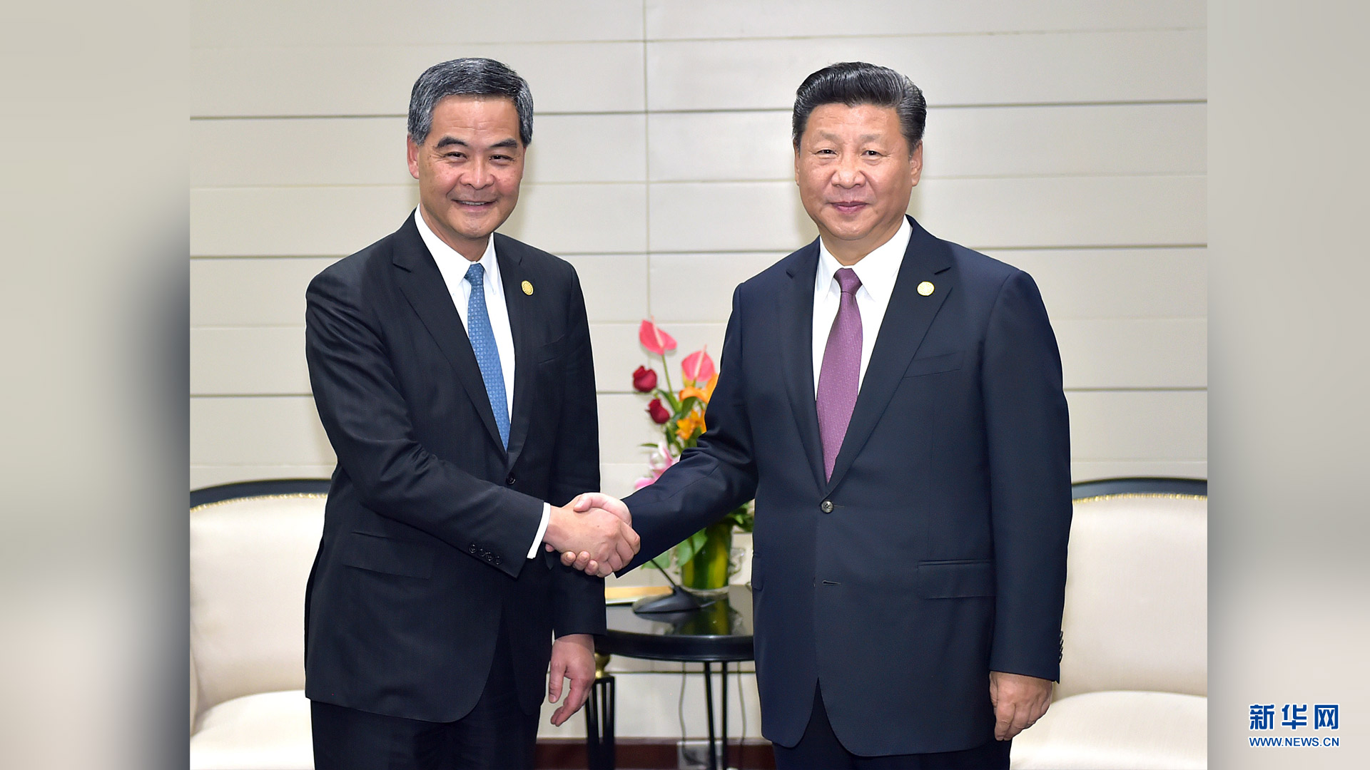 11月20日,國家主席習近平在秘魯首都利馬會見前來出席亞太經(jīng)合組織第二十四次領(lǐng)導(dǎo)人非正式會議的香港特別行政區(qū)行政長官梁振英。新華社記者 李濤 攝2016-11-21