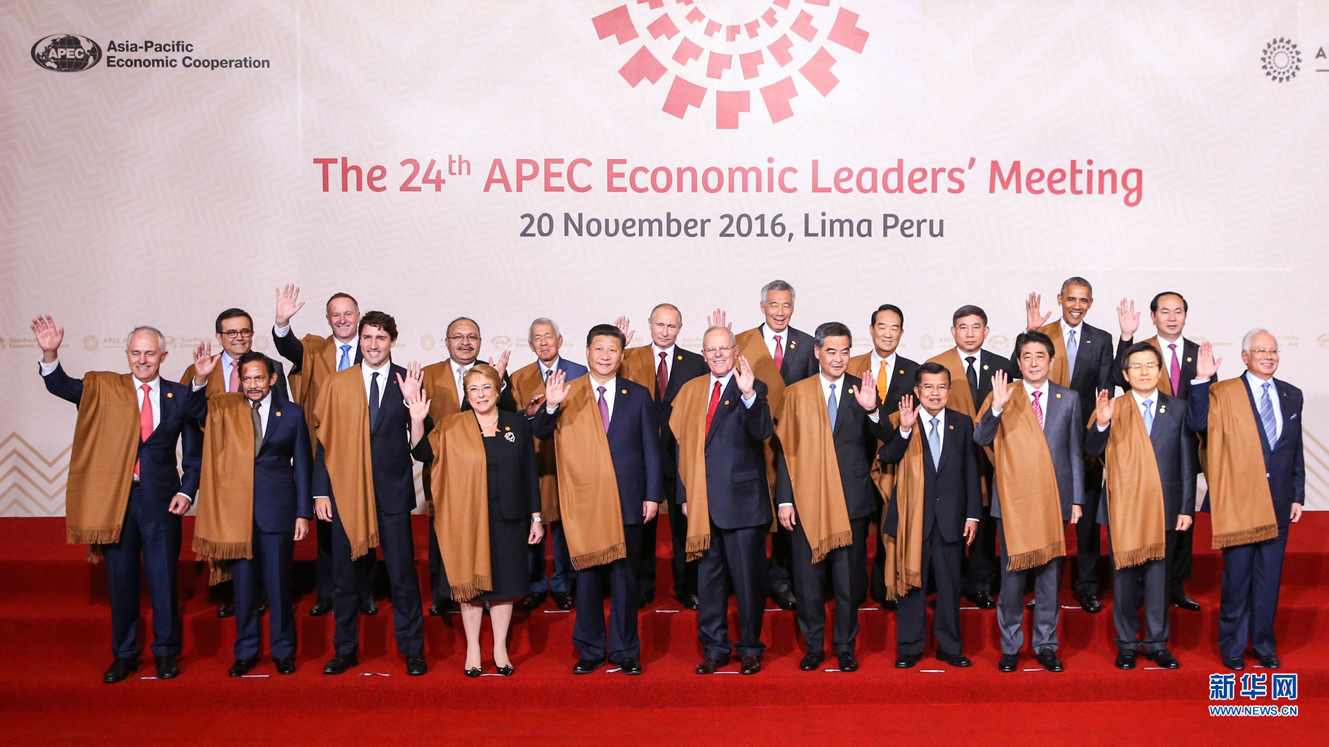 11月20日,亞太經(jīng)合組織第二十四次領(lǐng)導(dǎo)人非正式會議在秘魯利馬舉行。國家主席習近平出席并發(fā)表題為《面向未來開拓進取促進亞太發(fā)展繁榮》的重要講話。這是會議期間,國家主席習近平同其他亞太經(jīng)合組織成員經(jīng)濟體領(lǐng)導(dǎo)人、代表合影。 新華社記者 丁林 攝2016-11-21