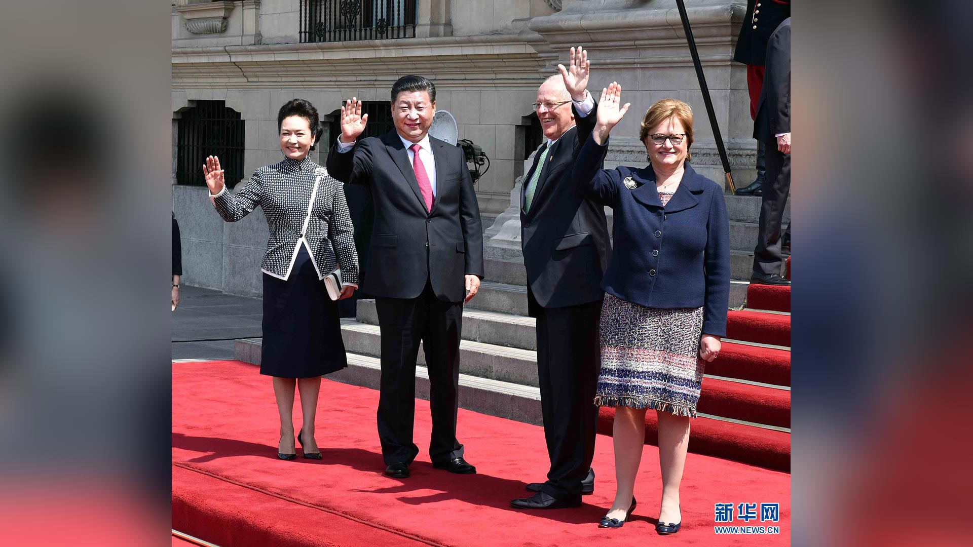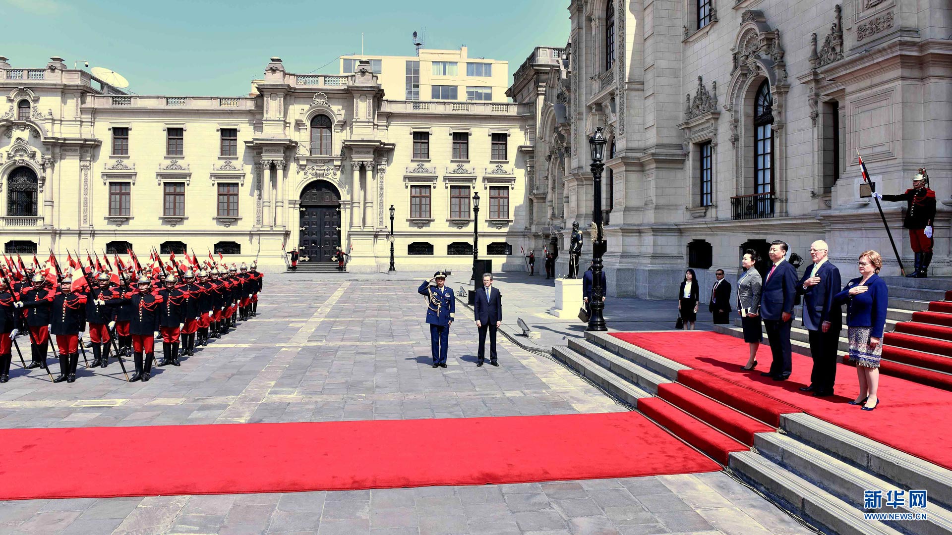 11月21日,國家主席習近平在利馬同秘魯總統(tǒng)庫琴斯基舉行會談。會談前,習近平出席庫琴斯基在總統(tǒng)府前廣場舉行的歡迎儀式。 新華社記者李濤 攝2016-11-23