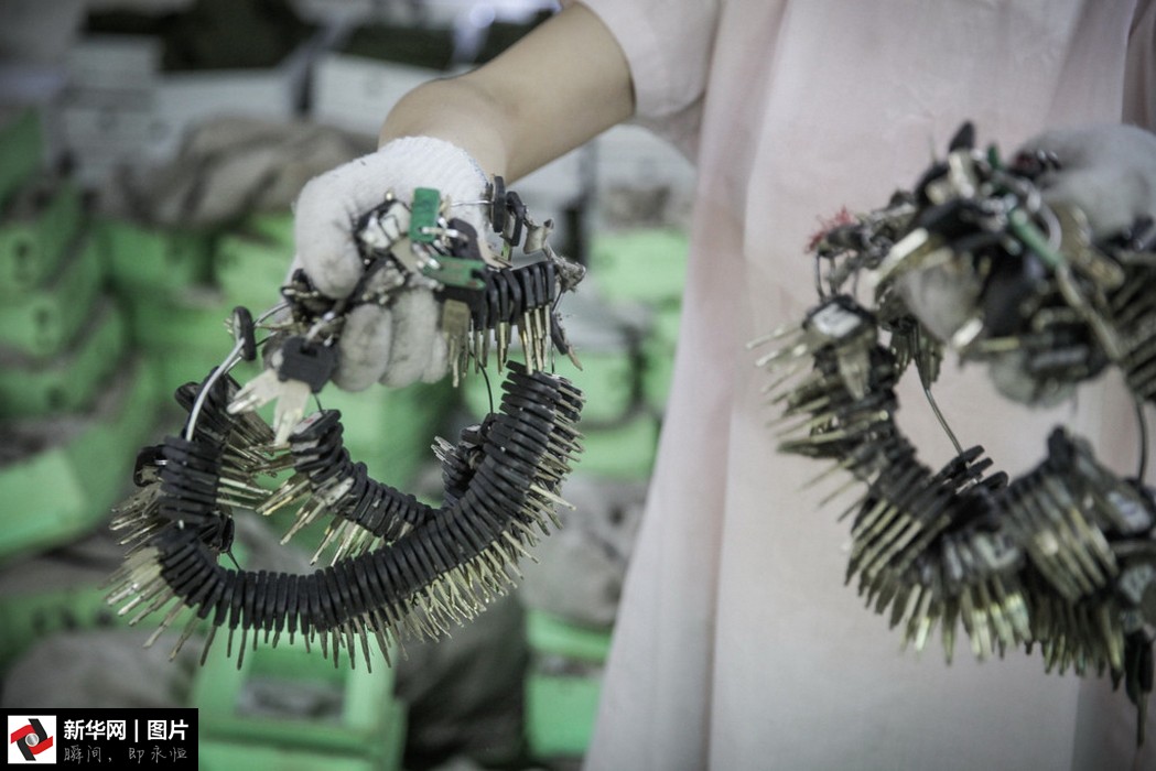 點(diǎn)鈔工手拿投幣箱的鑰匙。