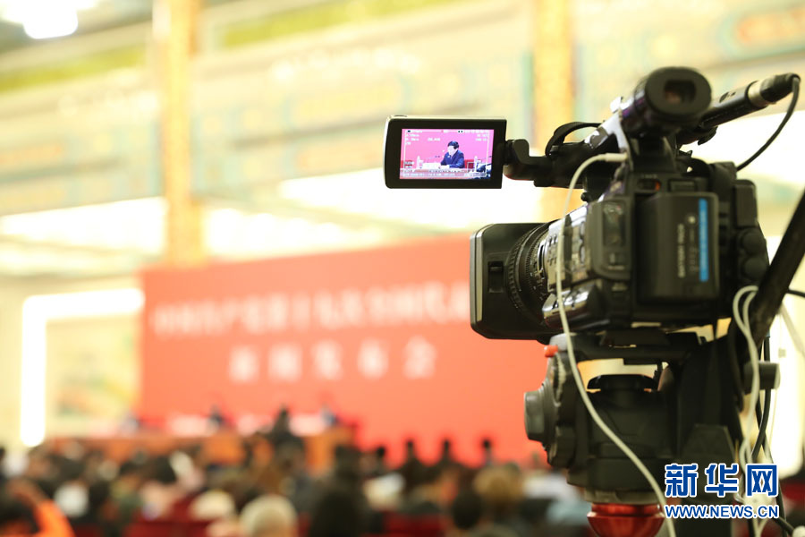 2017年10月17日下午,中國共產(chǎn)黨第十九次全國代表大會(huì)新聞發(fā)言人在人民大會(huì)堂三樓金色大廳舉行新聞發(fā)布會(huì),并回答中外記者的提問。圖為新聞發(fā)布會(huì)正在進(jìn)行。新華網(wǎng) 翟子赫 攝