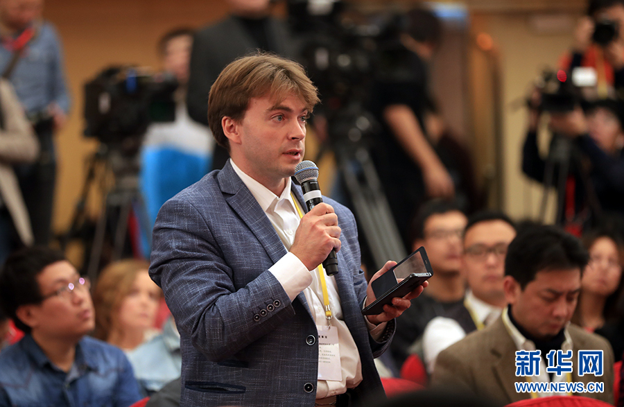 ??? 10月19日,十九大新聞中心舉行記者會,邀請中紀委、中組部負責人介紹黨的建設(shè)和全面從嚴治黨相關(guān)情況。圖為俄通·塔斯社記者提問。新華網(wǎng) 郝廣鵬攝
