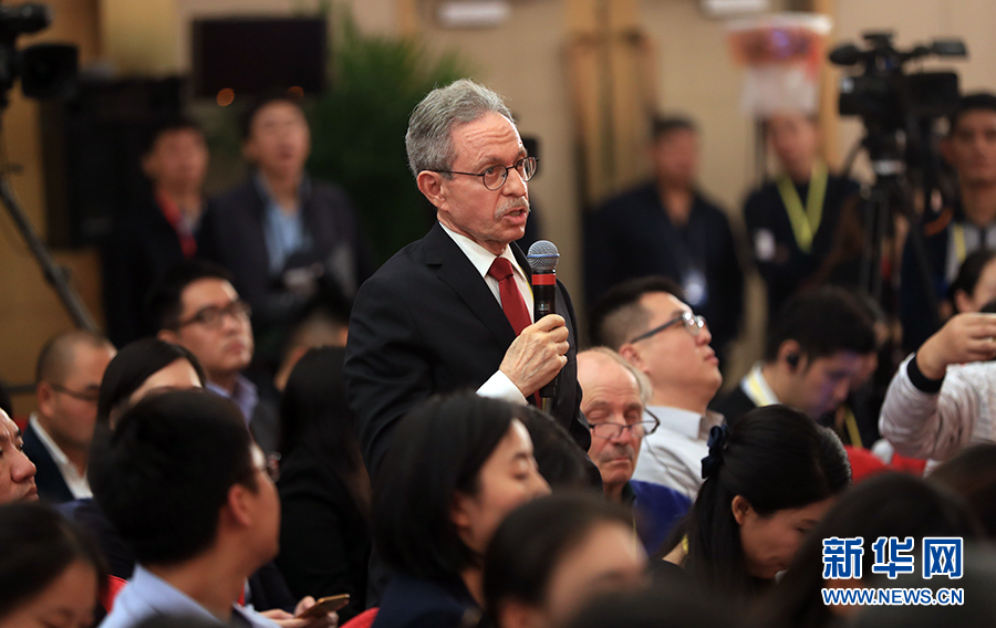 ??? 10月19日,十九大新聞中心舉行記者會(huì),邀請(qǐng)中紀(jì)委、中組部負(fù)責(zé)人介紹黨的建設(shè)和全面從嚴(yán)治黨相關(guān)情況。圖為CGTN記者提問(wèn)。新華網(wǎng) 郝廣鵬攝