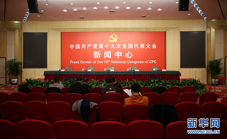 ??? 10月20日,十九大新聞中心舉行記者會,邀請中宣部、中央文明辦、文化部、新聞出版廣電總局相關(guān)負責人介紹加強思想道德和文化建設情況,并回答記者提問。圖為記者會現(xiàn)場。新華網(wǎng) 郝廣鵬 攝
