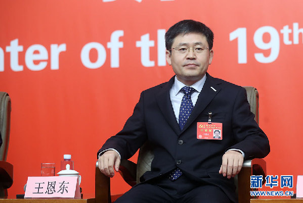 10月20日19:00,十九大新聞中心舉辦集體采訪活動(dòng),主題為“實(shí)施創(chuàng)新驅(qū)動(dòng)發(fā)展戰(zhàn)略”。圖為浪潮集團(tuán)首席科學(xué)家、中國(guó)工程院院士王恩東。新華網(wǎng)?郝廣鵬 攝