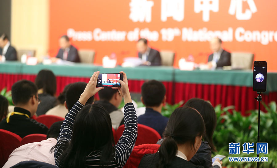 ??? 10月21日,十九大新聞中心舉辦記者招待會,邀請國家發(fā)展改革委黨組書記、主任何立峰,副主任張勇,副主任寧吉喆介紹以新發(fā)展理念為引領(lǐng),推進(jìn)中國經(jīng)濟(jì)平穩(wěn)健康可持續(xù)發(fā)展有關(guān)情況,并回答記者提問。圖為記者招待會現(xiàn)場。新華網(wǎng) 郝廣鵬攝
