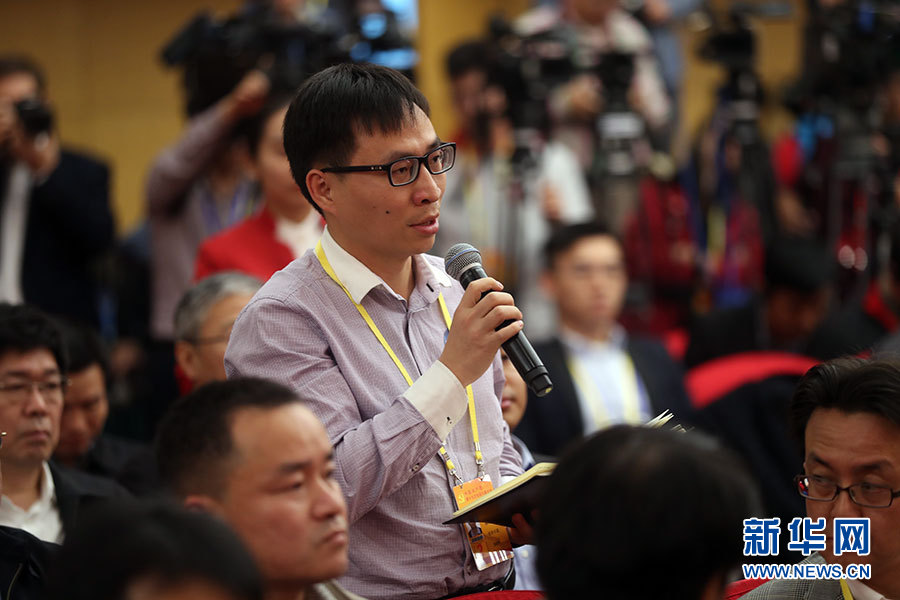 10月21日,十九大新聞中心舉辦記者招待會,邀請國家發(fā)展改革委黨組書記、主任何立峰,副主任張勇,副主任寧吉喆介紹以新發(fā)展理念為引領,推進中國經(jīng)濟平穩(wěn)健康可持續(xù)發(fā)展有關(guān)情況,并回答記者提問。圖為經(jīng)濟日報記者提問。新華網(wǎng) 郝廣鵬攝